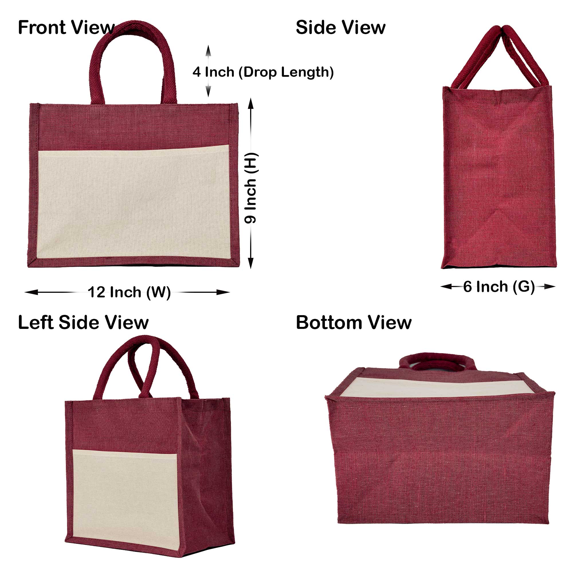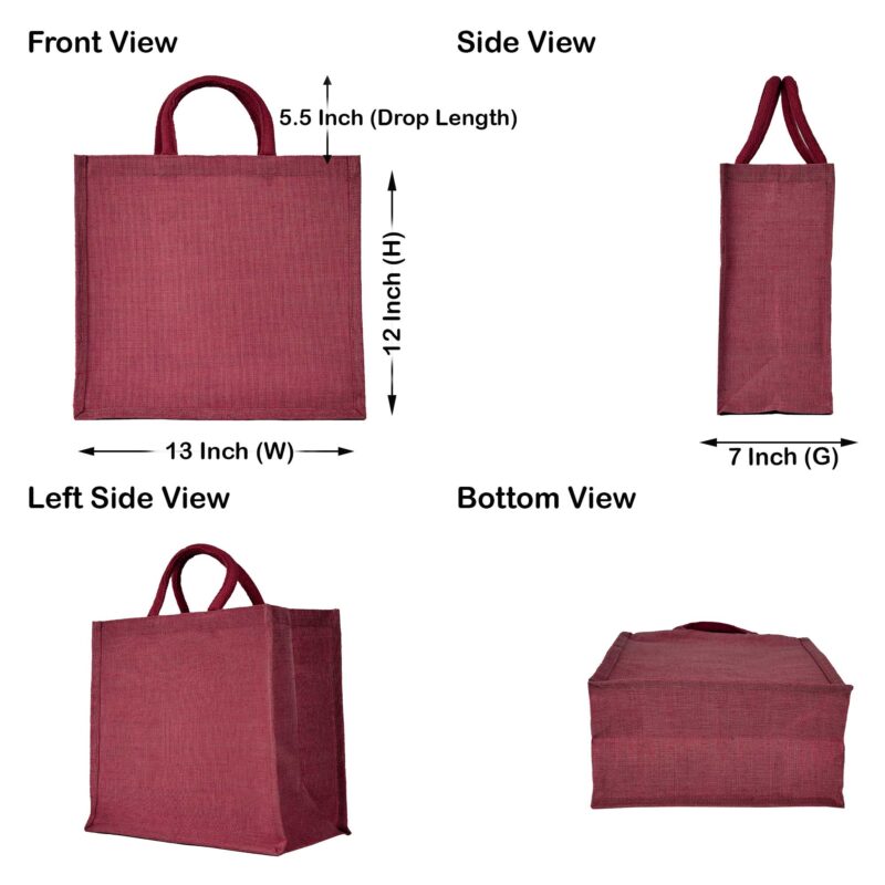 4 Jute Reusable Shopping Bags – Deep Red, Pink, Green, Orange 12″x12″x8″