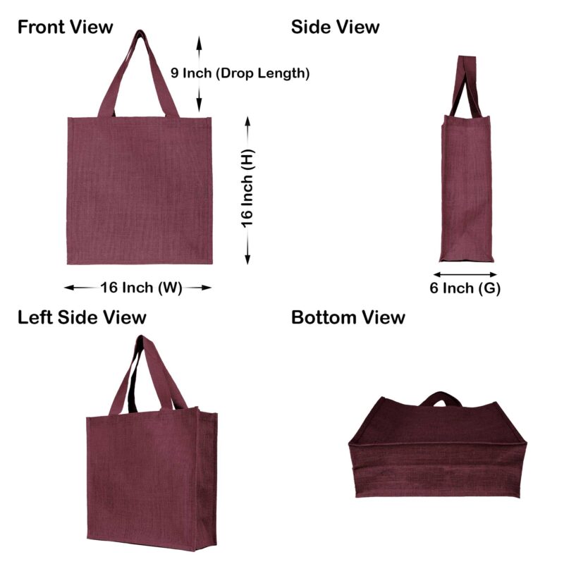4 Jute Shopping & Travel Bags – Deep Red, Pink, Green & Orange – 16″x16″x6″