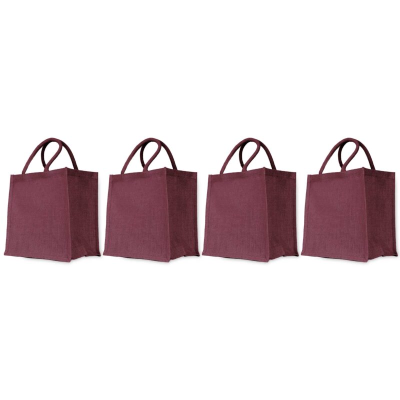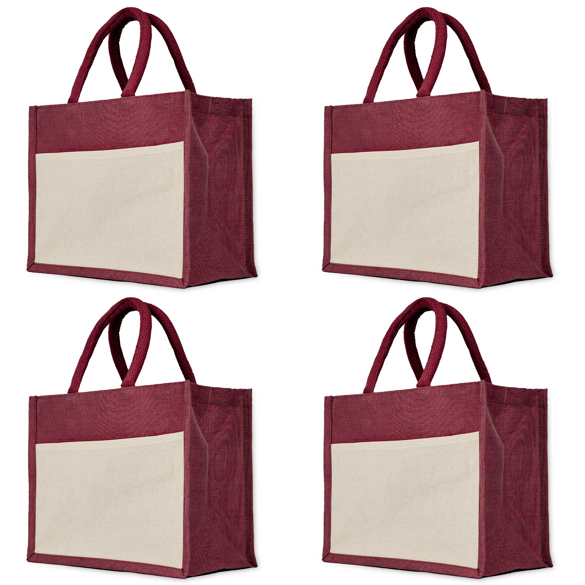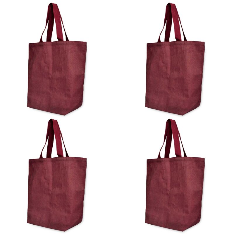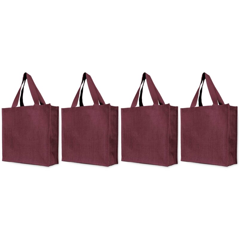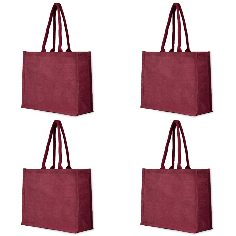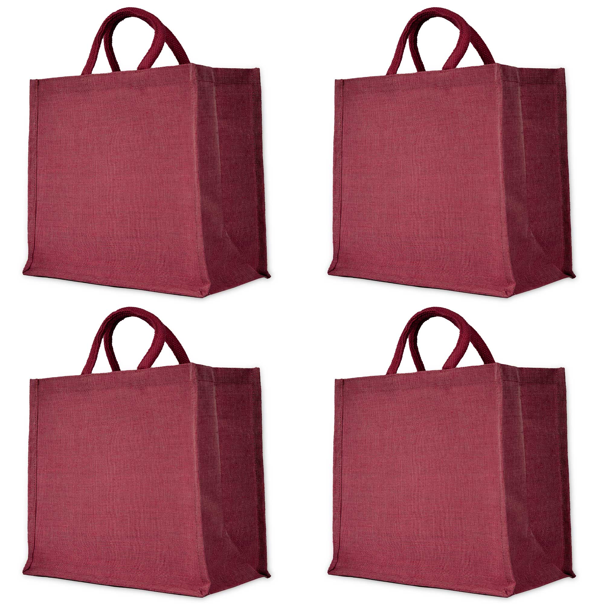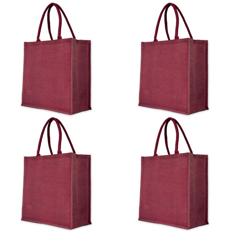 4-Pack Jute Tote Bags – Reusable 15″x12″x6″ Deep Red, Pink, Green & Orange
