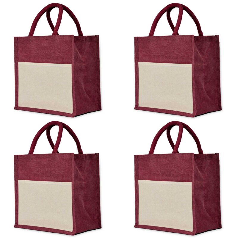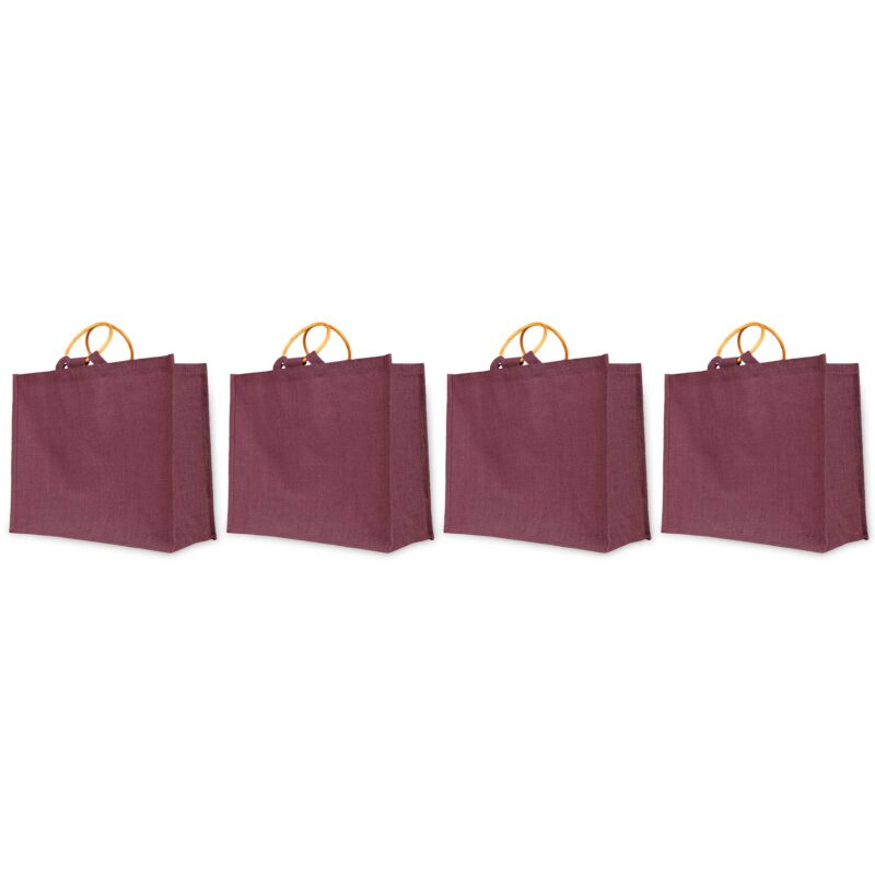 4 Juco Tote Bags – 15x12x6 Deep Red, Pink, Green, Orange