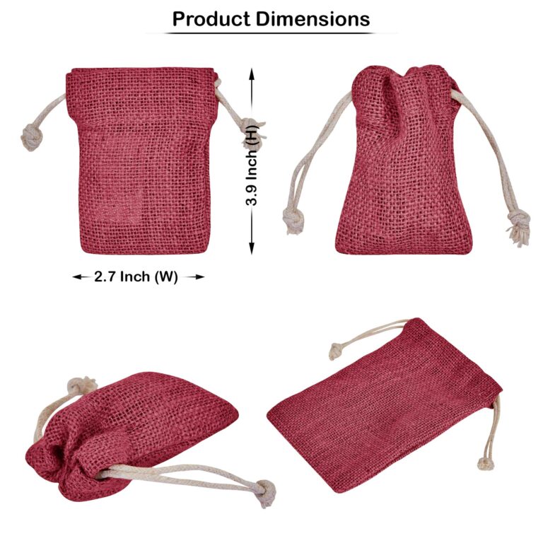 Jute Gift Pouches with Drawstring 3.9″ x 2.7″ – Deep Red, Pink, Green, Orange- 8 Pcs.