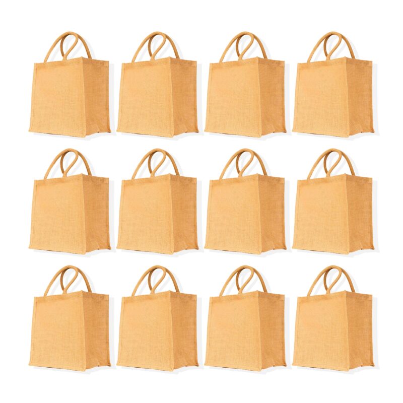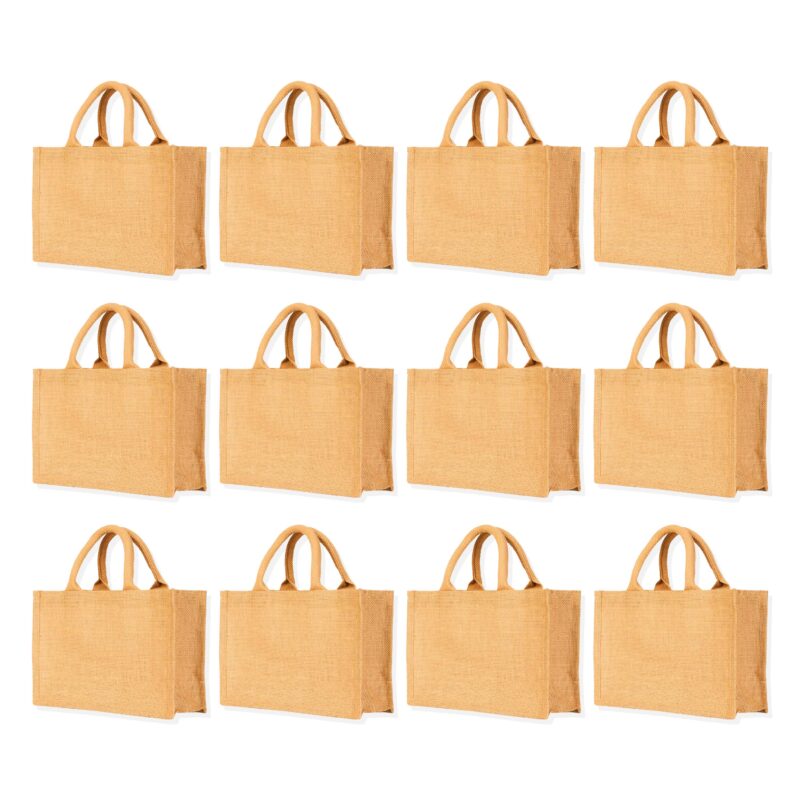 Ecojute 12-Pack Jute Tote Bags – Reusable Burlap Bags for Bridesmaids & Travel