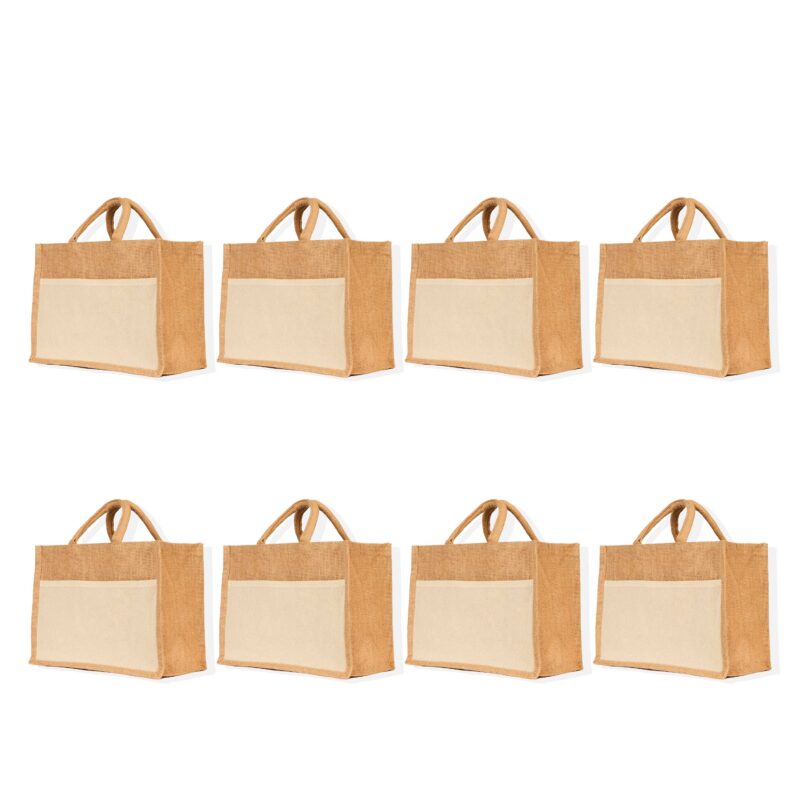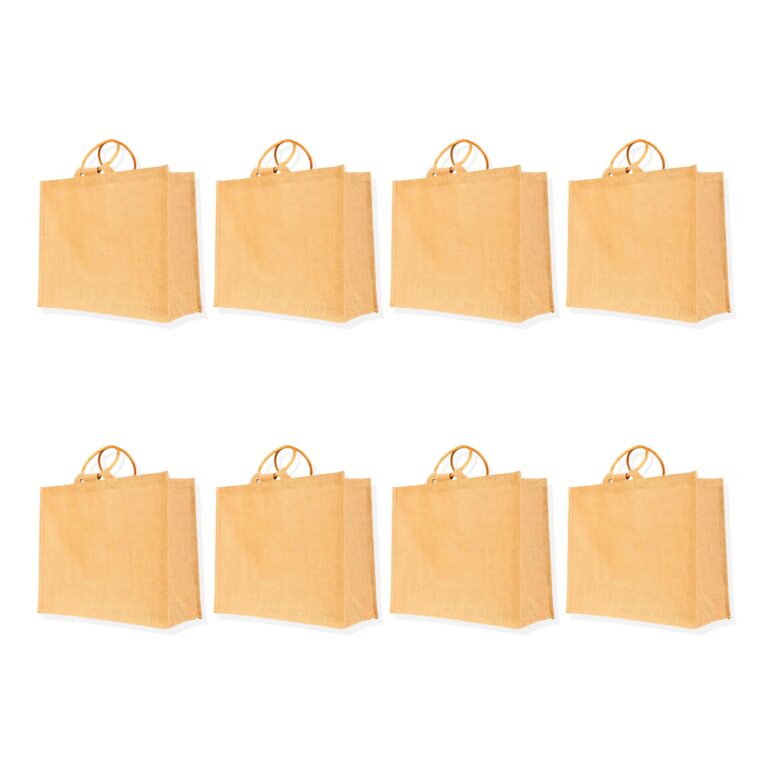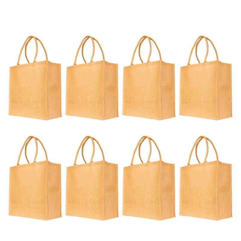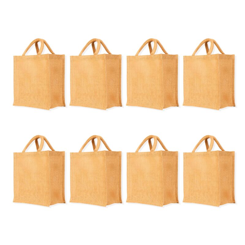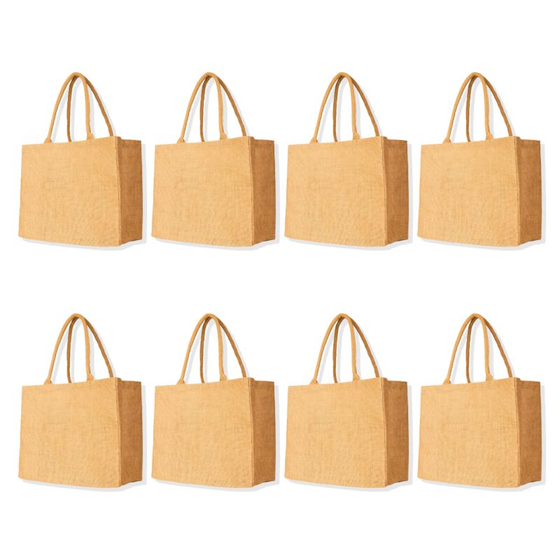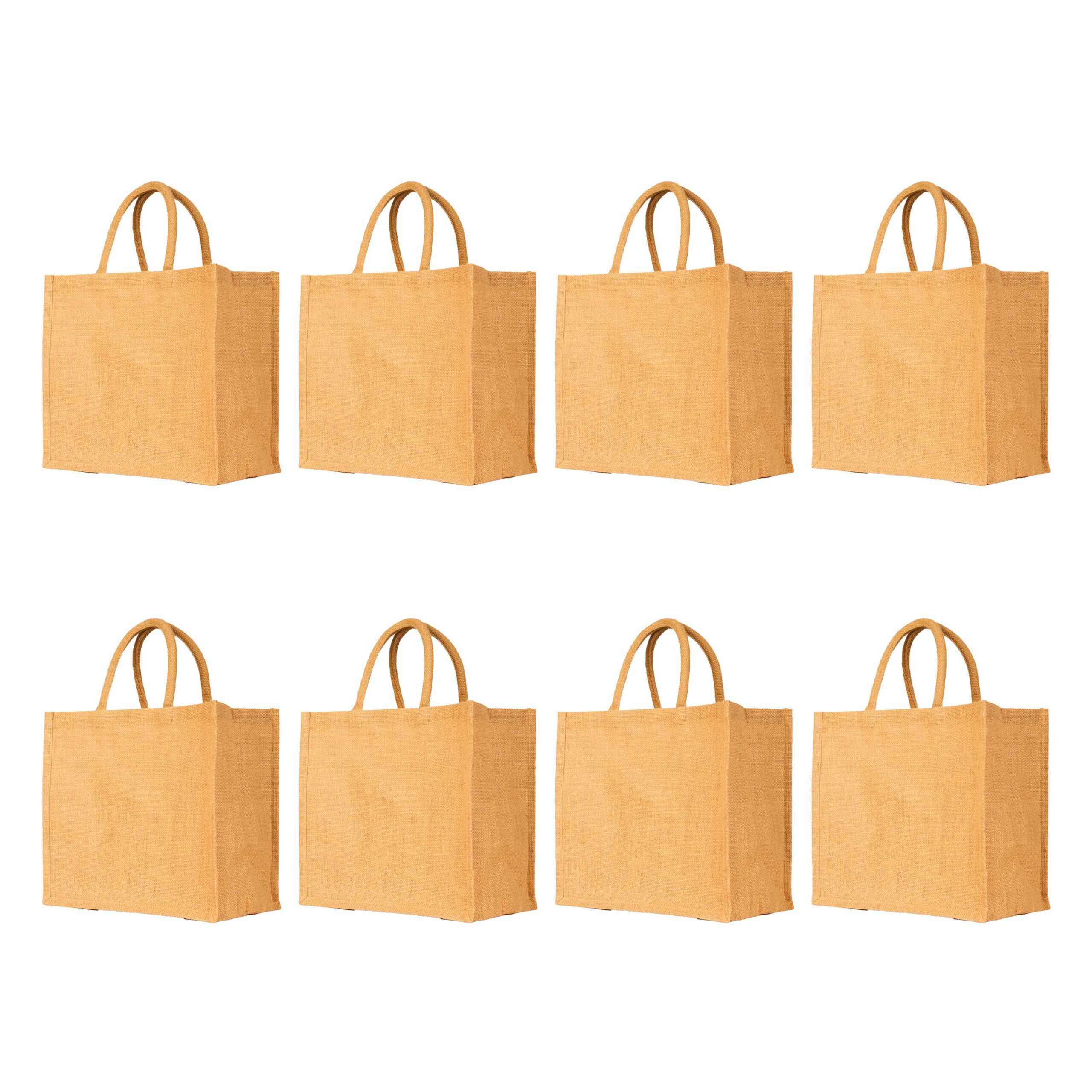 8-Pack Ecojute Jute Shopping Bags 13H x 16L x 7W – Reusable Beach & Gift Bags