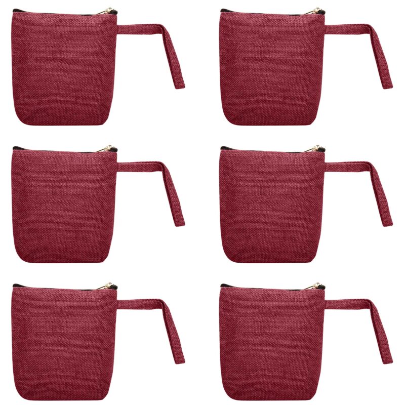 6 Jute Cosmetic Bags – 5.91″x5.90″x1.96″, Deep Red, Pink, Green, Orange Shades