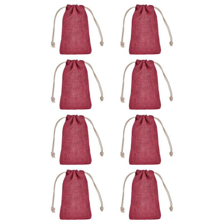Ecojute- 8 Jute Gift Bags 6.29″ x 3.93″ – Deep Red, Pink, Green, Orange