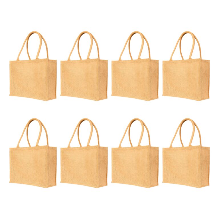8-Pack Ecojute Jute Shopping Bags 13H x 16L x 7W – Reusable Beach & Gift Bags