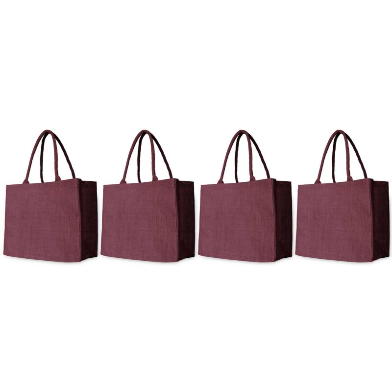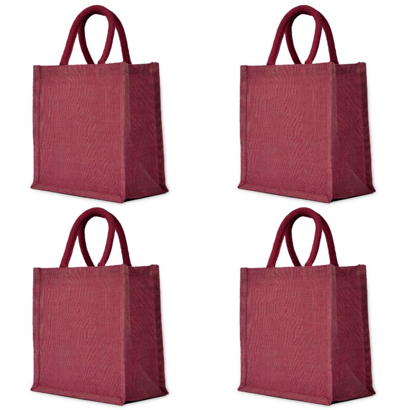 Ecojute Set of 4 Jute Tote Bags – Deep Red, Pink, Green & Orange – 13″x16″x7″