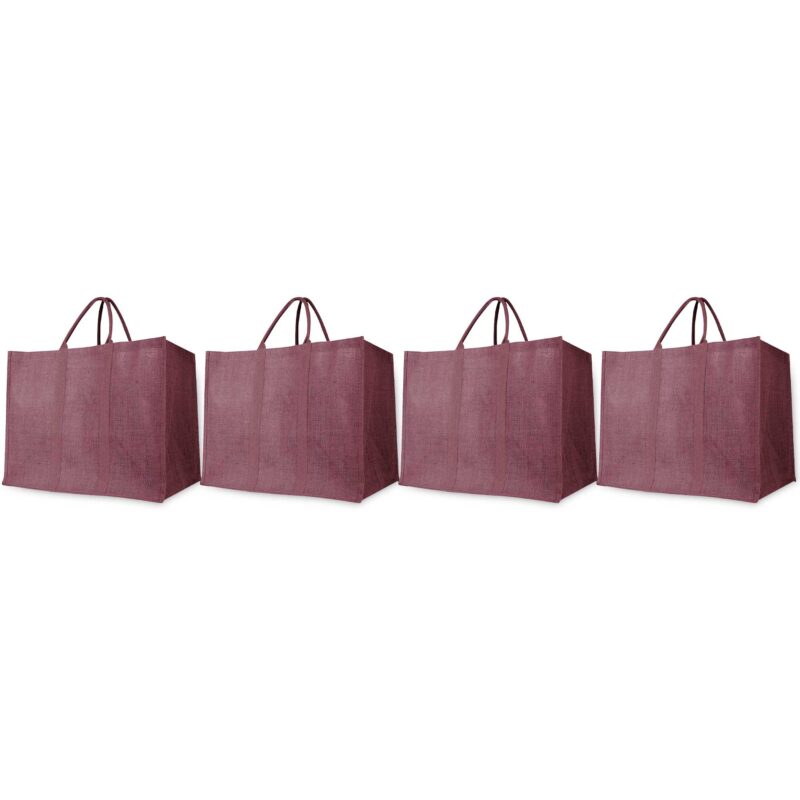 Ecojute 4 Reusable Jute Tote Bags – Deep Red, Pink, Green, Orange –16″x24″x14″