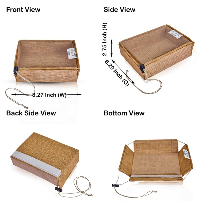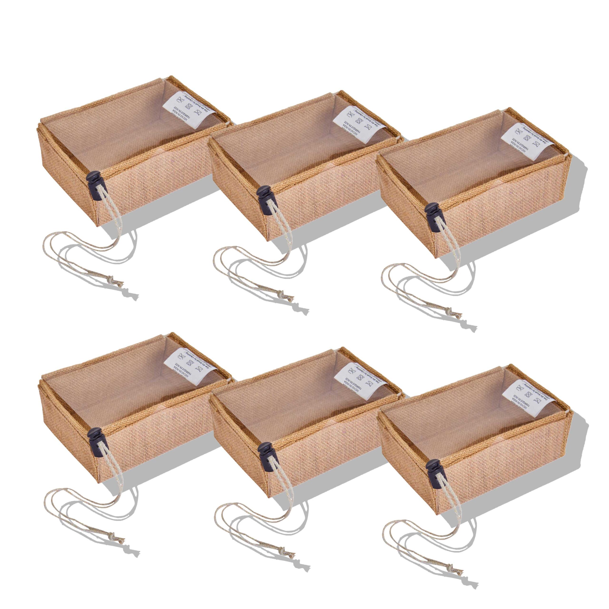 6 Jute Gift Boxes with Drawstring & PVC – 6.3″x4.33″x2.36″