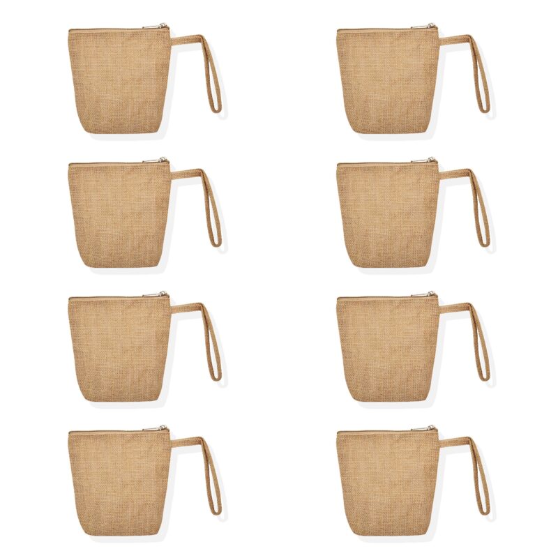 8-Pack Ecojute Cosmetic Bags – 4.7”L x 7.87”H Jute Travel Pouches, Beige