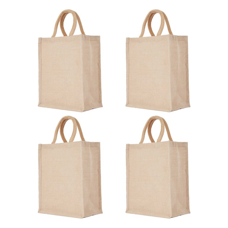 4-Pack Shopping Juco Handbags – Reusable Totes with Pocket, 12″x10″x4″