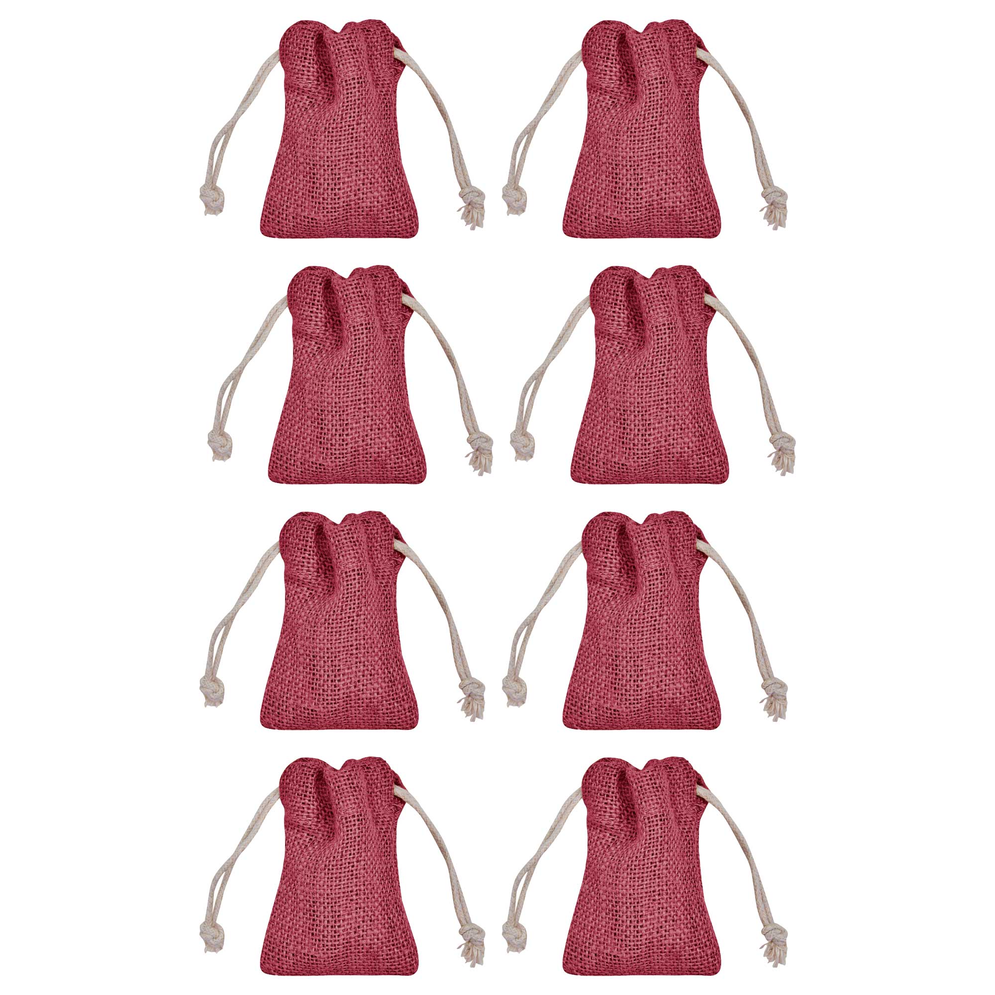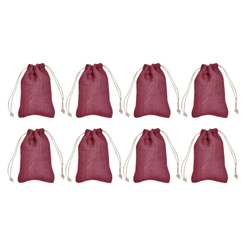 Pack of 8 Jute Gift Bags or Pouches 7.08″ x4 .72″ – Deep Red, Pink, Green, Orange