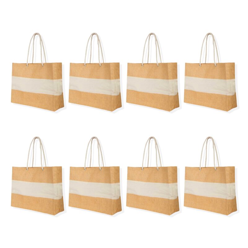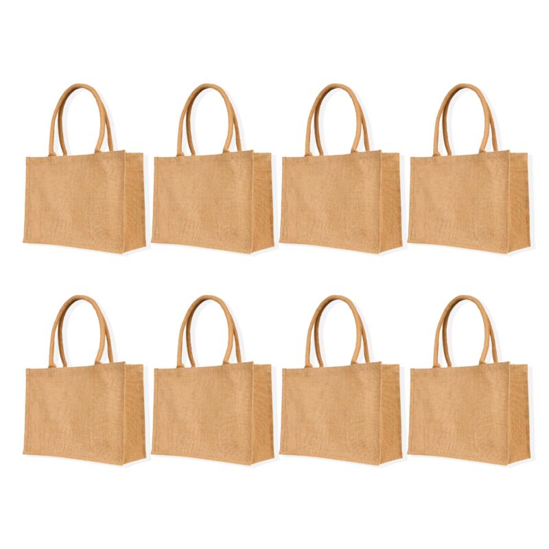 8-Pack Ecojute Jute Shopping Bags 13H x 16L x 7W – Reusable Beach & Gift Bags