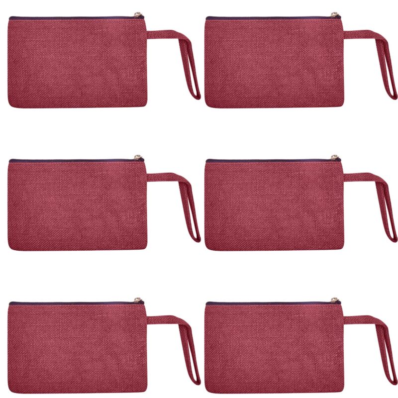 Set of 6 Cosmetic Bags– 4.7” x 7.87” Deep Red, Pink, Green and Orange