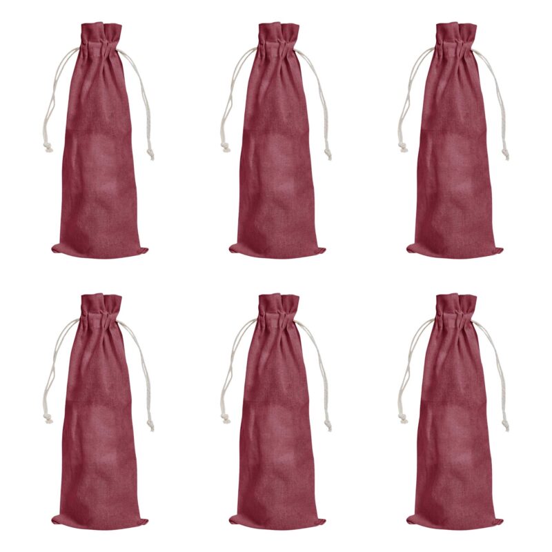 6-Pack Cotton Wine Pouches – Deep Red, Pink, Green, Orange – 14.17″ x 5.9″