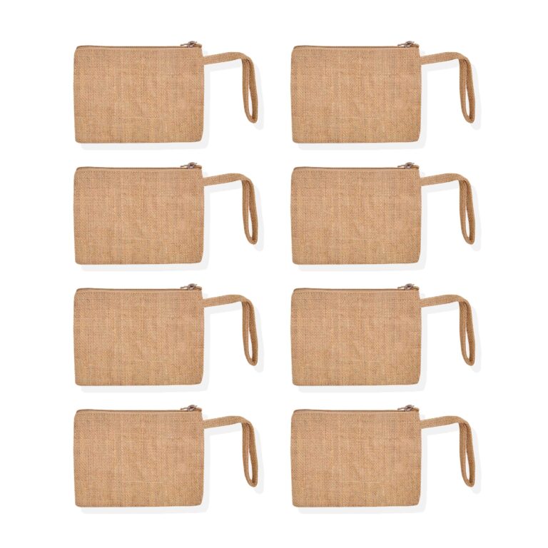 Pack of 8 Jute Cosmetic Bags – Makeup and Toiletry Pouches -5.11″ H x 7.08 “L