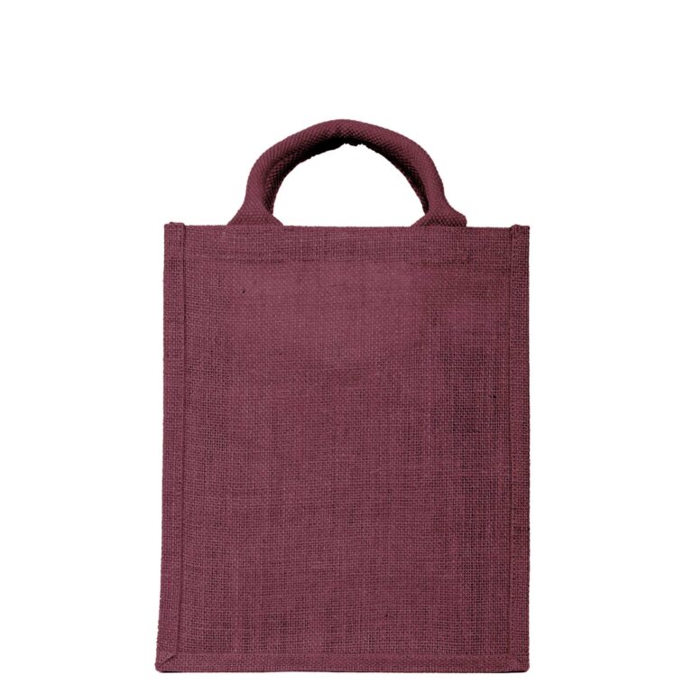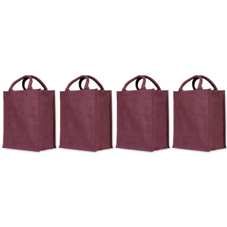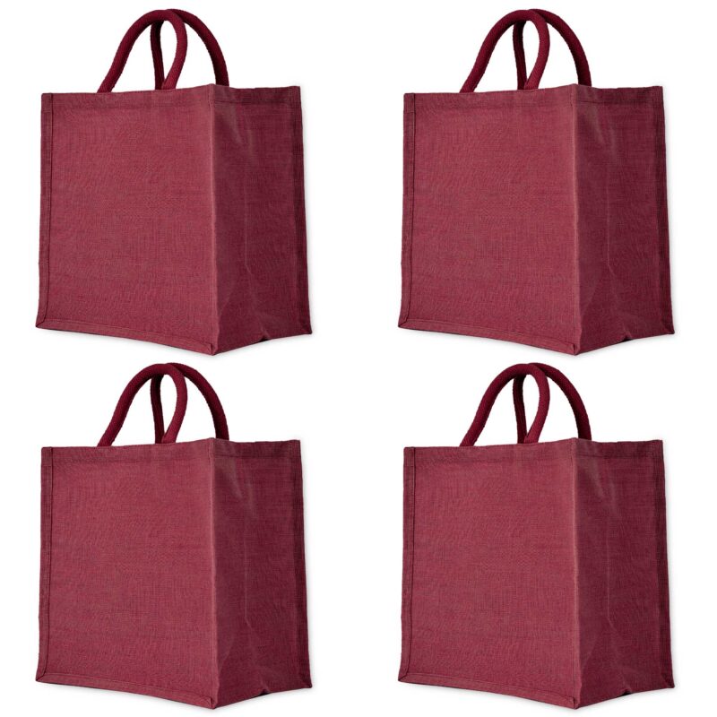Ecojute 4-Pack Jute Tote Bags – Deep Red, Pink, Green, Orange- 10″x10″x4″
