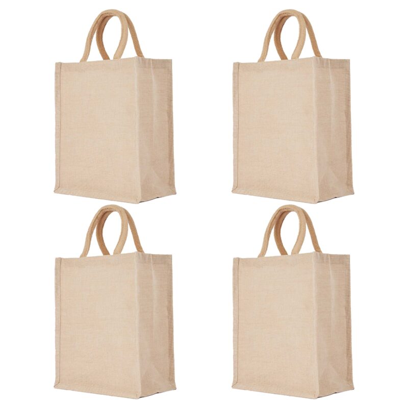 4-Pack Juco Tote Bags– Reusable Burlap Shopping & Christmas 13″x16″x7″