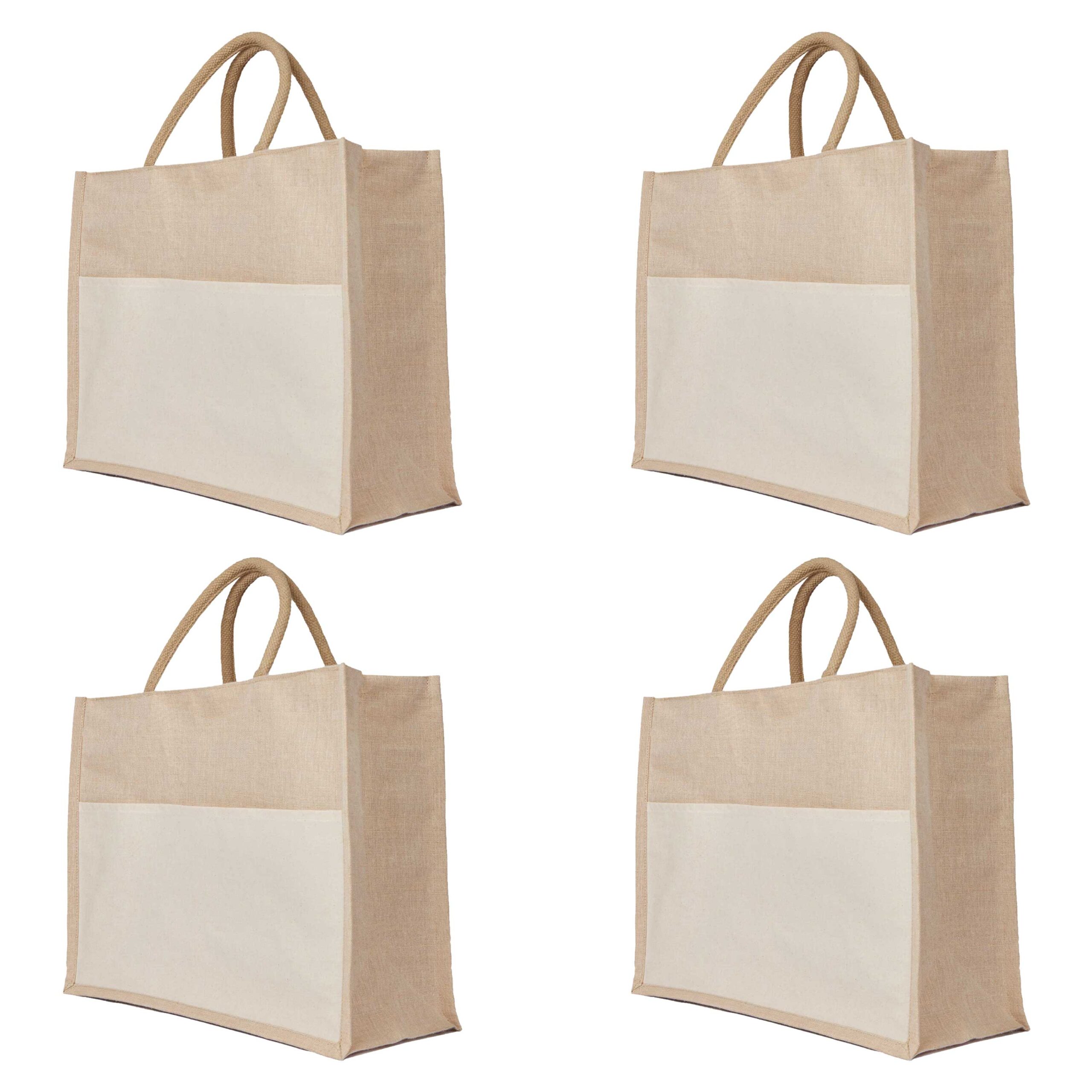 Set of 4 Juco Reusable Tote Bags with Inner Pocket – 12″H x 10″L x 6″W