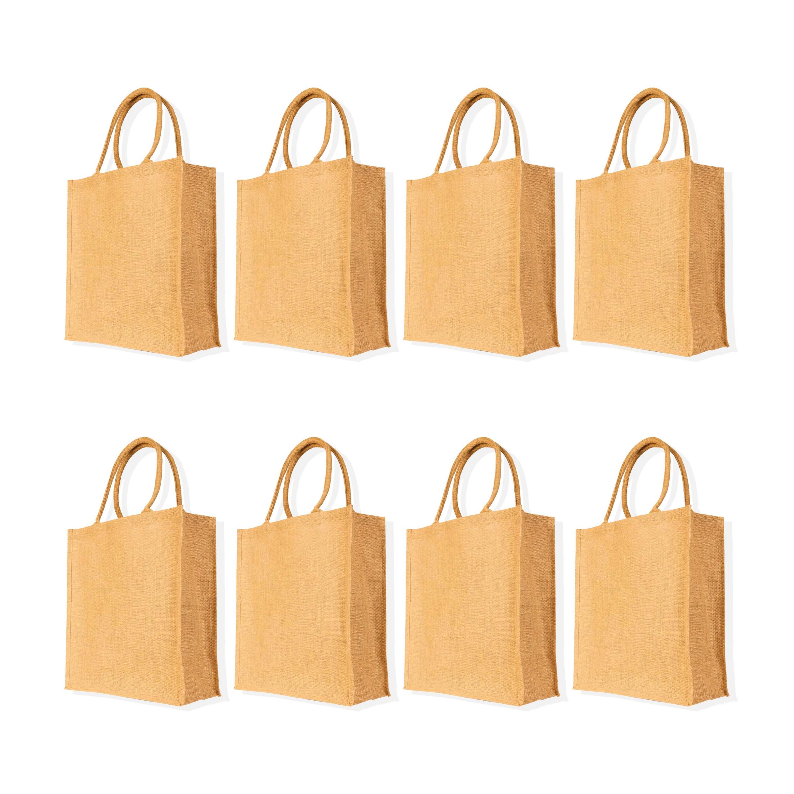 8-Pack Ecojute Jute Shopping Bags 13H x 16L x 7W – Reusable Beach & Gift Bags