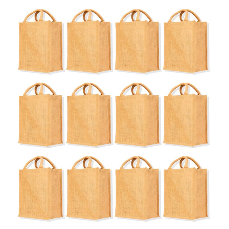12-Pack Jute Grocery Bags – 8″H x 12″L x 4″W Reusable Shopping, DIY & Gifting