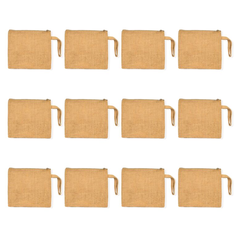 Ecojute 12-Pack Zipper Jute Pouches – 7″H x 8″L for Toiletries, DIY & Travel Use