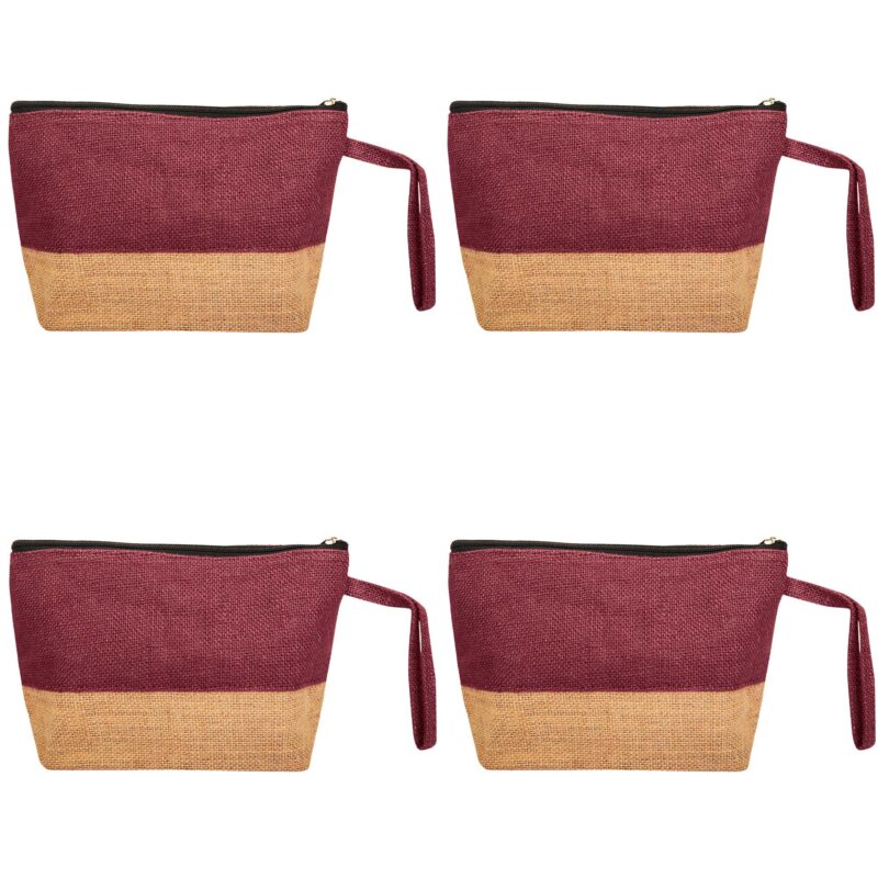 4-Pack Jute Cosmetic Bags – Deep Red, Pink, Green, Orange – 9.45″x5.9″x2.75″