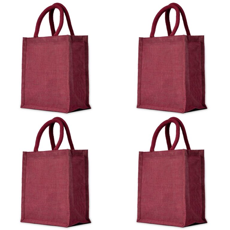 Ecojute Set of 4 Jute Tote Bags – Deep Red, Pink, Green & Orange – 13″x16″x7″