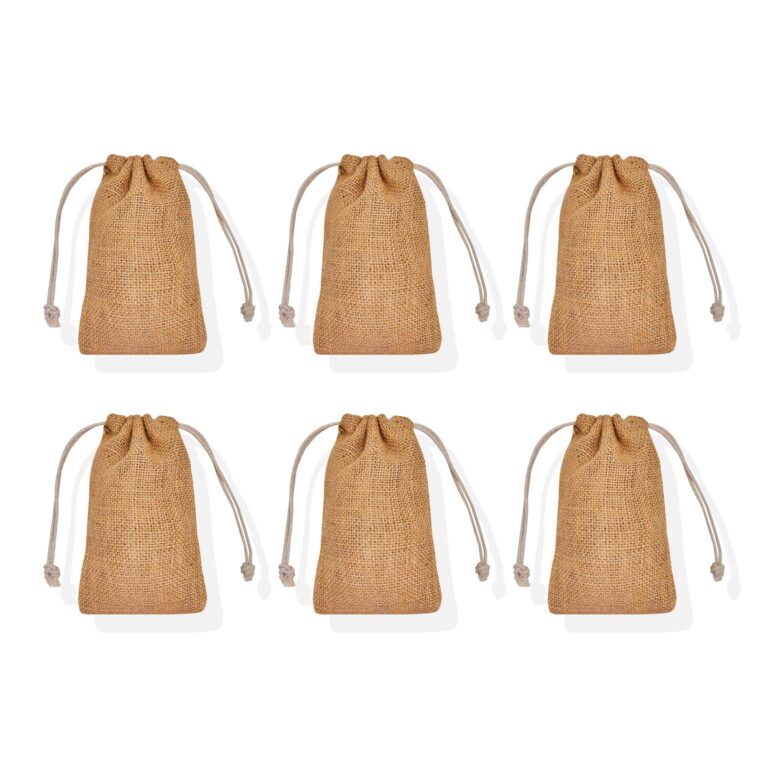 6 Burlap Drawstring Bags 3.93″x6.29″ – Small Pouches for Gifts
