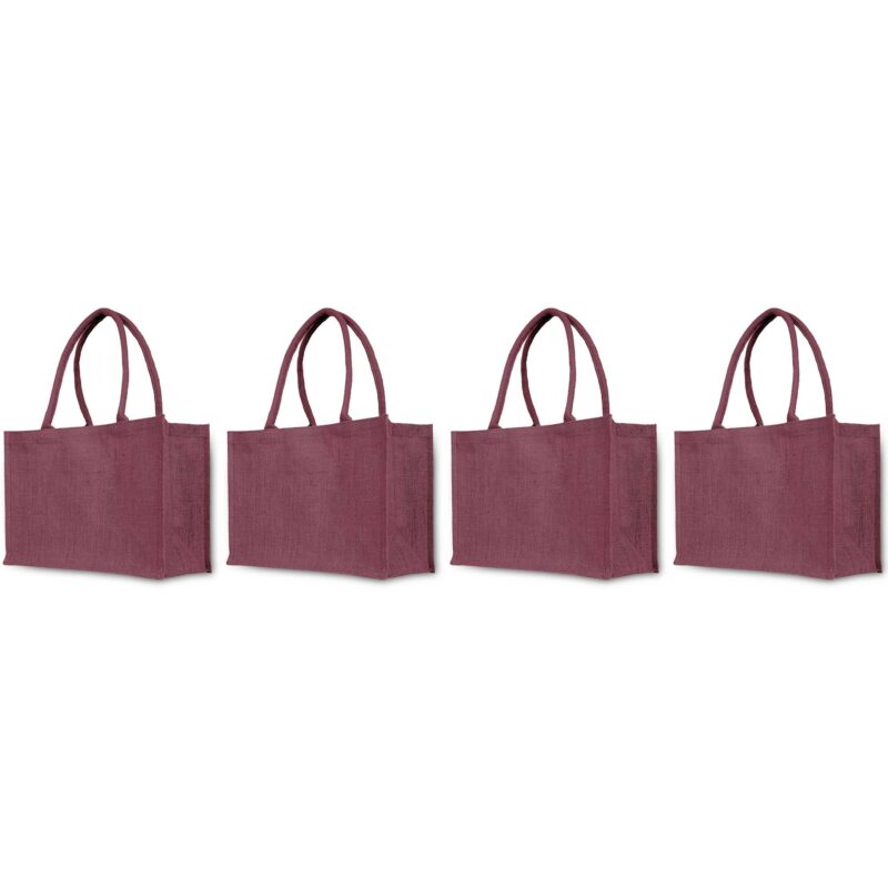4 Juco Tote Bags – 15x12x6 Deep Red, Pink, Green, Orange