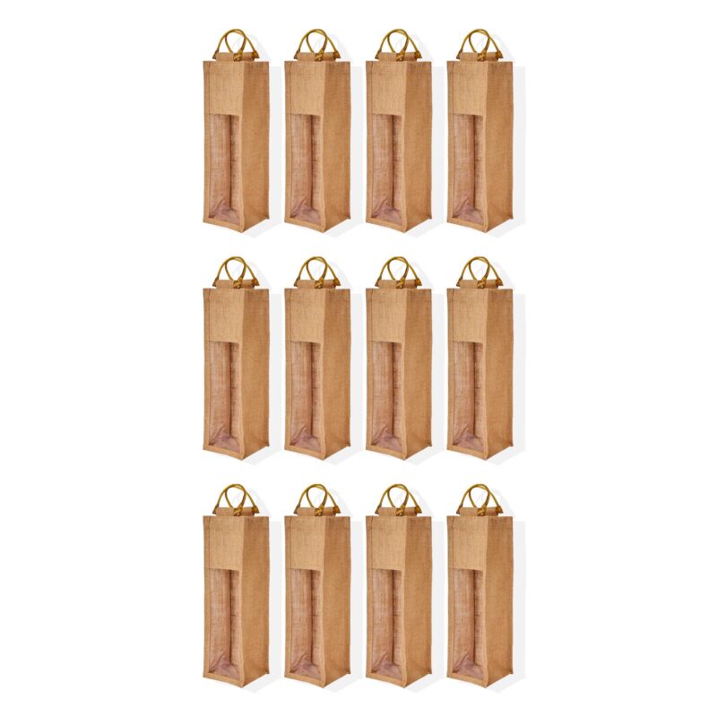 12-Pack Jute Reusable Wine Bags 7.88×13.38×3.93in for 2-Bottles