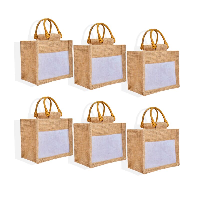 6 Small Jute Gift Bags with Handles – 6.3″x5.11″x4.13″
