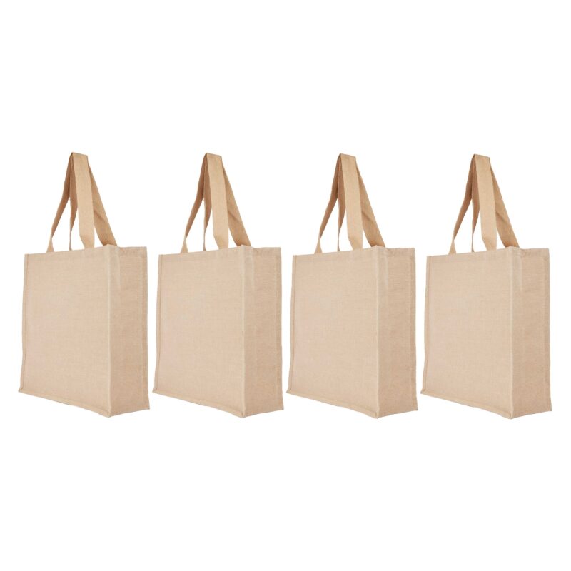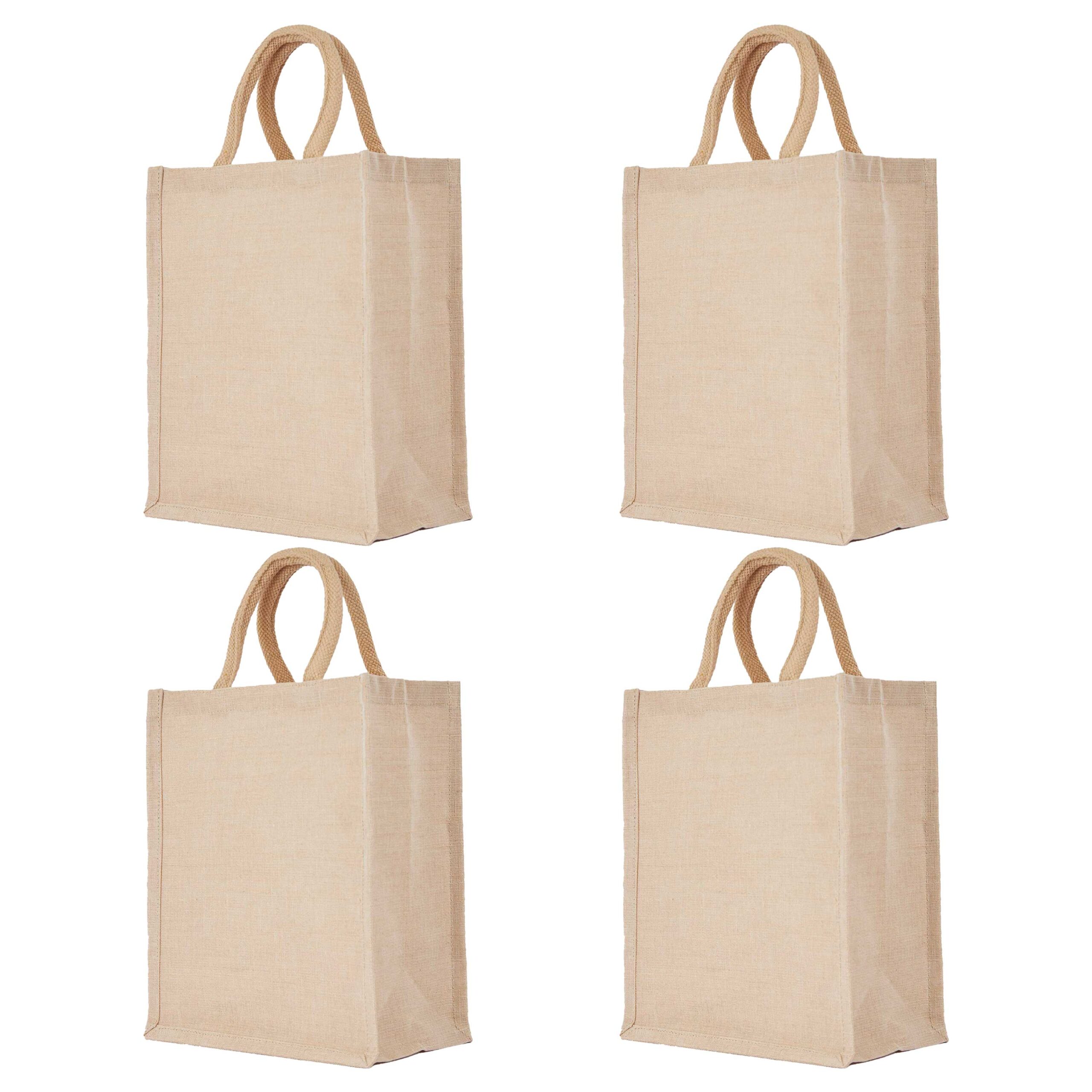 Set of 4 Eco-Friendly Juco Tote Bags – Durable Burlap Totes, 8″x12″x4″