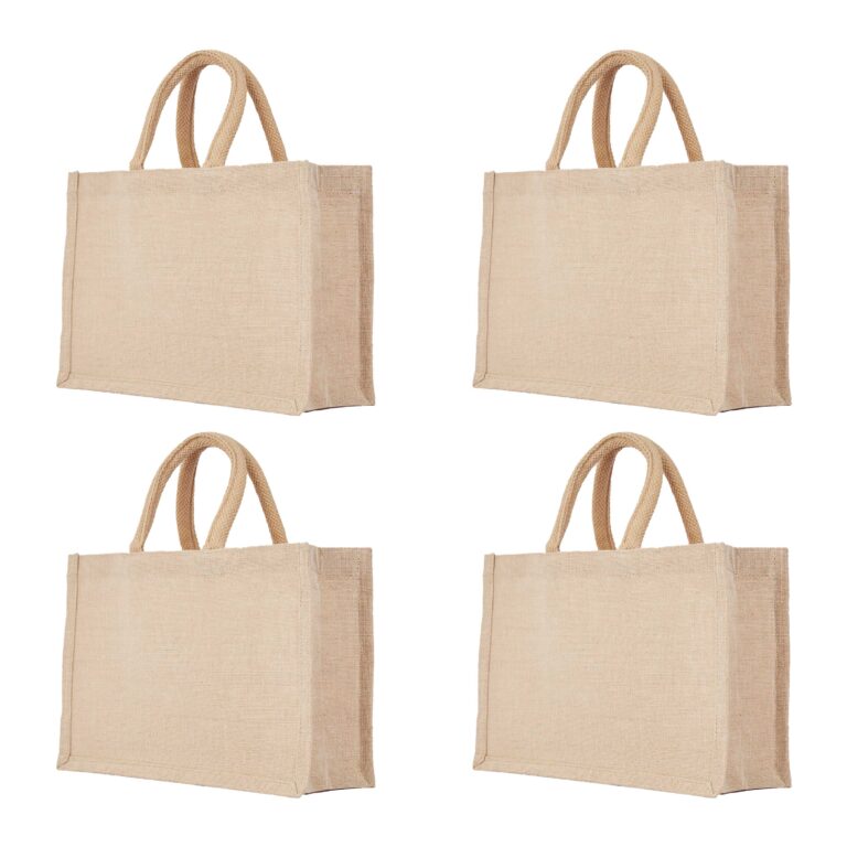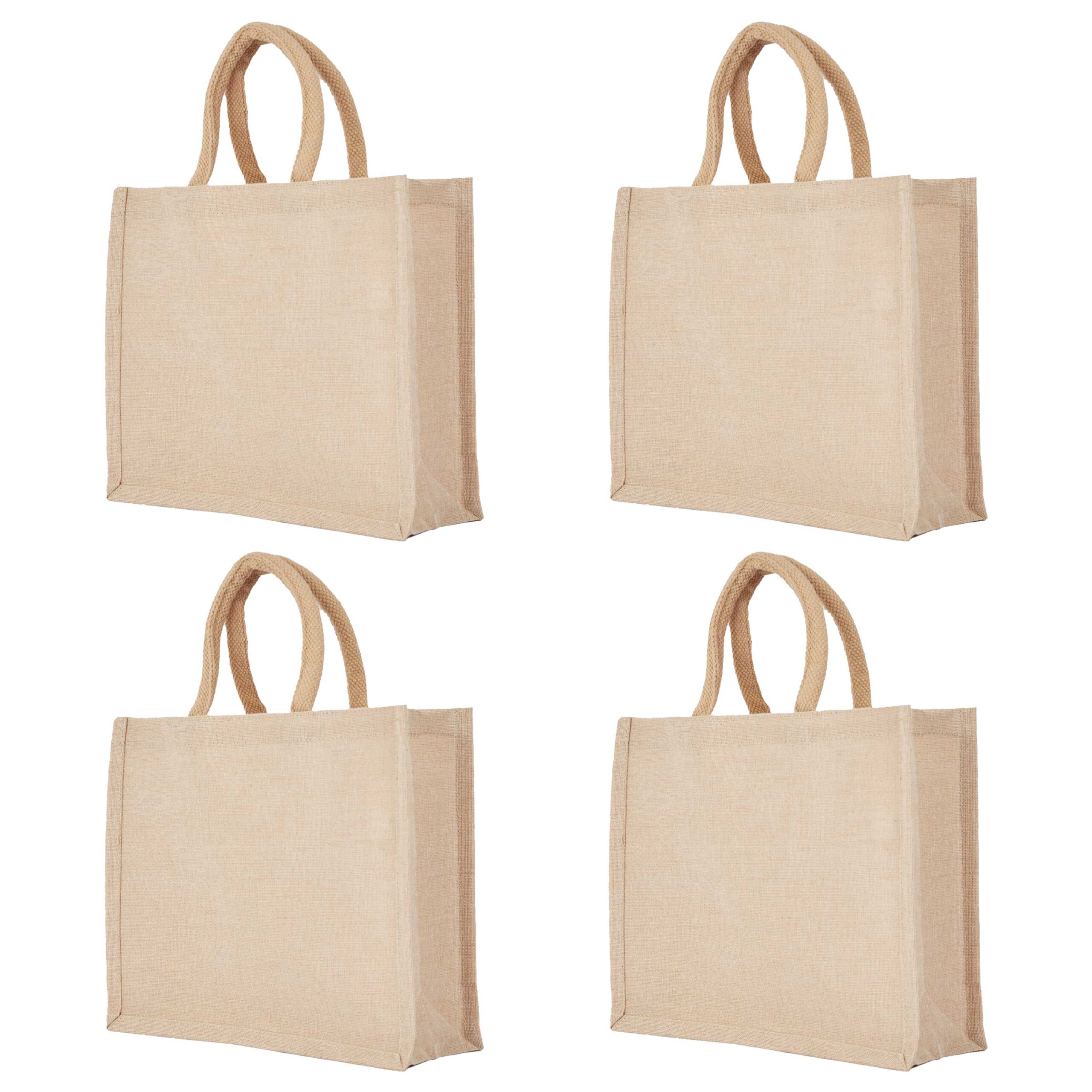 4-Pack Juco Totes – Durable Jute-Cotton Blend, Laminated, 16″x16″x6″