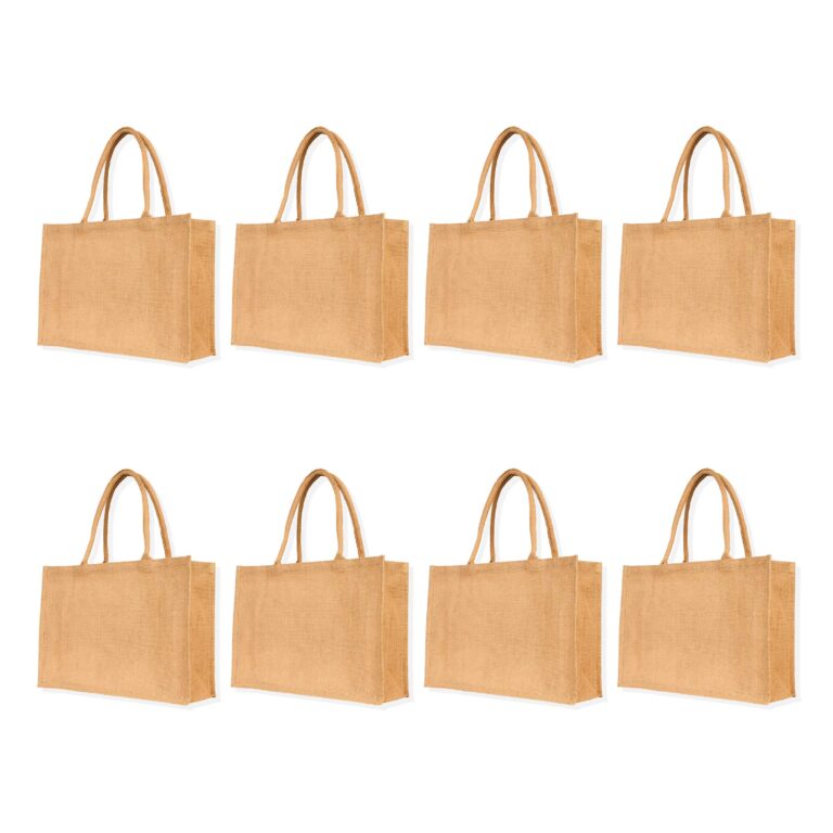8-Pack Ecojute Jute Shopping Bags 13H x 16L x 7W – Reusable Beach & Gift Bags