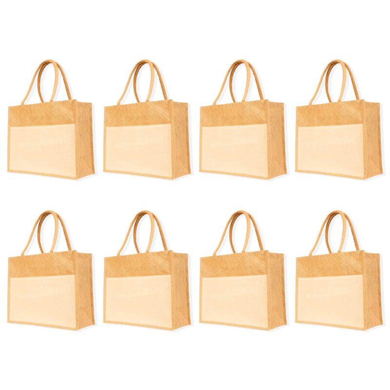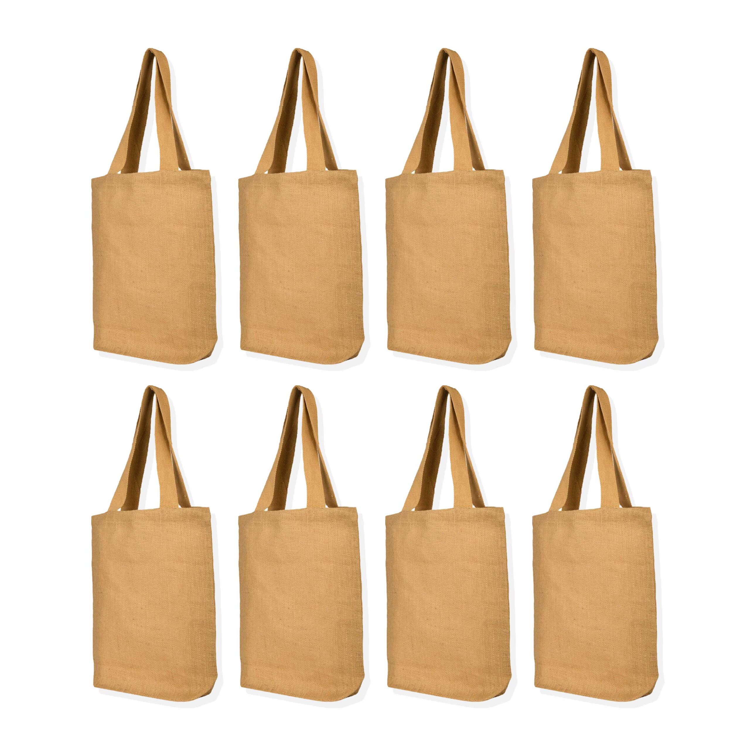 8-Pack Ecojute Jute Shopping Bags 13H x 16L x 7W – Reusable Beach & Gift Bags