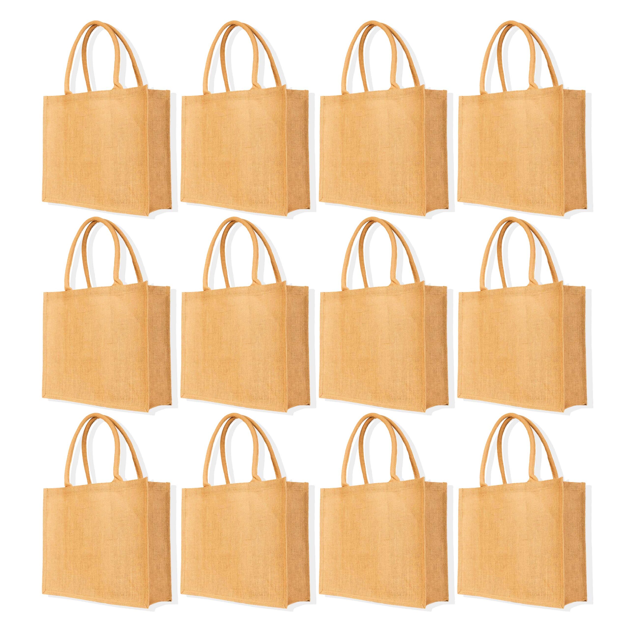 Ecojute Reusable Beach Jute Tote Bags 16Hx16Lx6W –12-Pack, Travel & Gifting