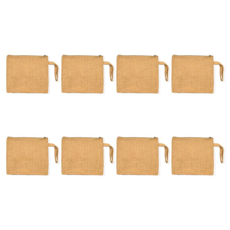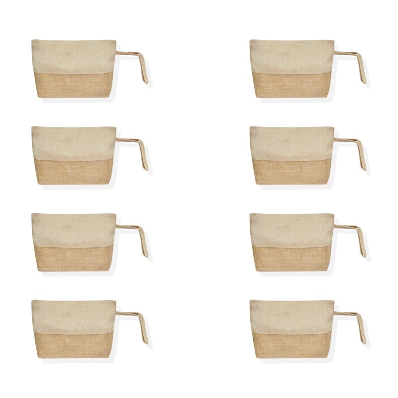 Ecojute 8-Pack Jute Travel Pouches – 7″H x 8″L Zipper Bags for Makeup & Crafts