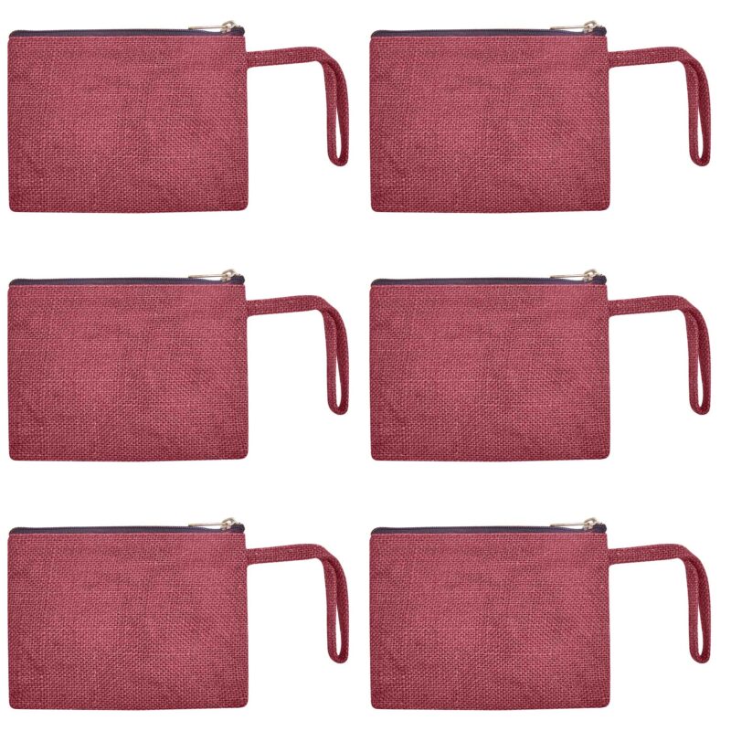 Pack of 6 Deep Red, Pink, Green, and Orange Jute Cosmetic Pouches– 5.11″x 7.08″