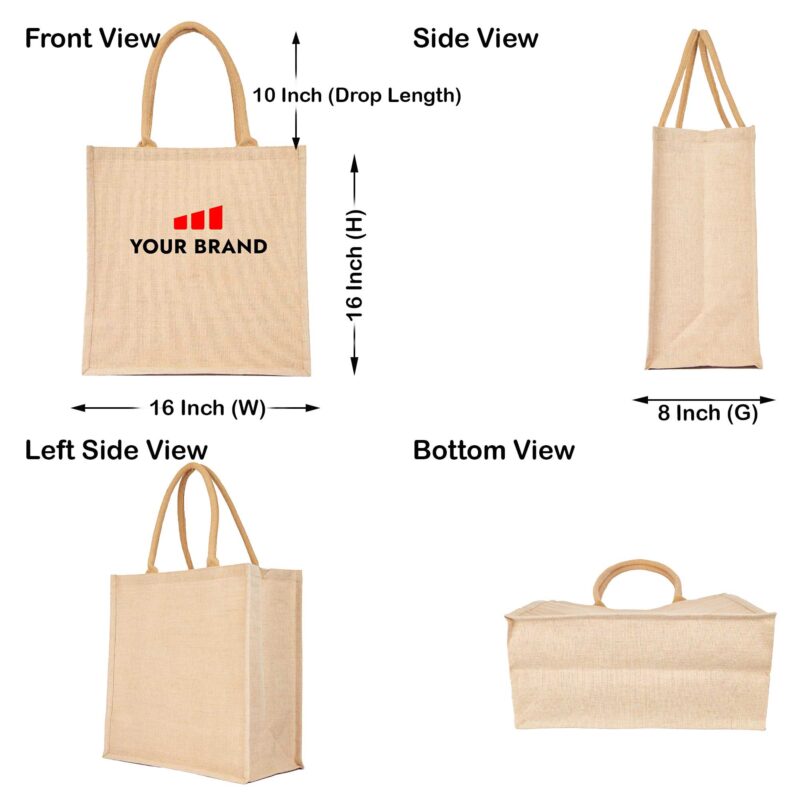 Set of 4 Durable Juco Promotional & Shopping Bags with Handles – 16″x16″x8″