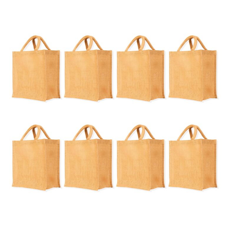 Set of 8 Ecojute Jute Tote Bags 12H x 10L x 4W – Eco-Friendly Gift & DIY Bags