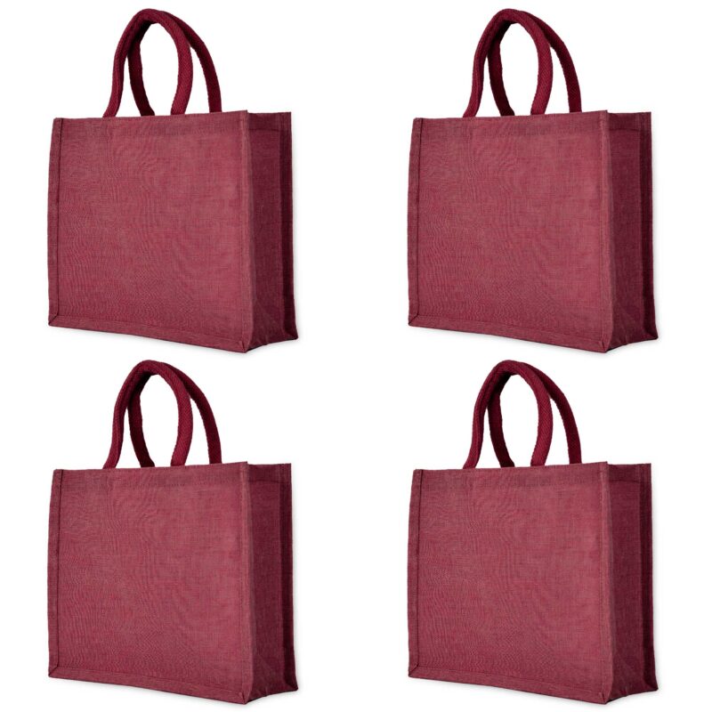 4-Pack Jute Tote Bags – Reusable 15″x12″x6″ Deep Red, Pink, Green & Orange