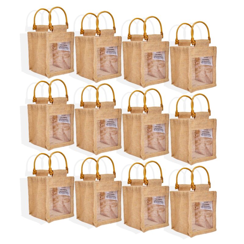 12-Pack Jute Reusable Wine Bags 7.88×13.38×3.93in for 2-Bottles