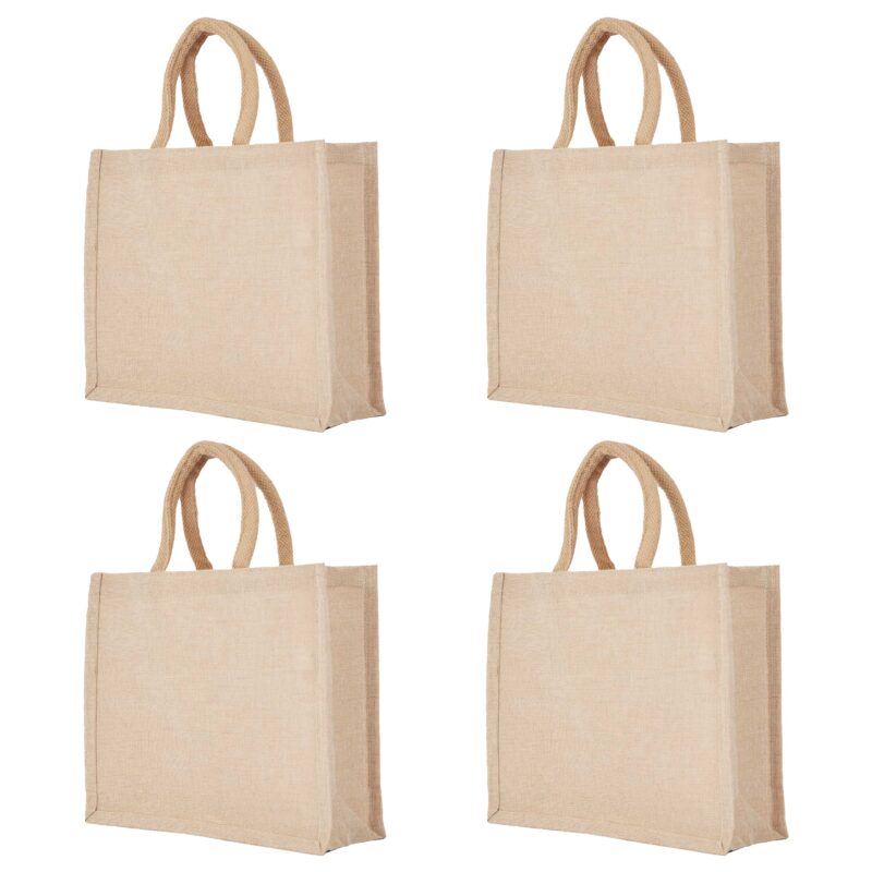 4-Pack Reusable Juco Tote Bags – Daily Use & Promotions – 16″ L x 12″ H x 7″ W