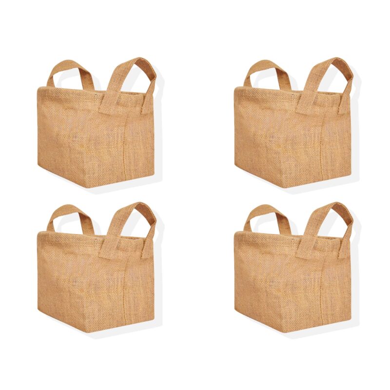 Jute Storage Basket 7.88H x 11.02W x 7.87L – Pack of 4 Collapsible