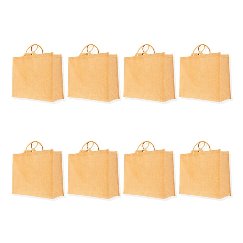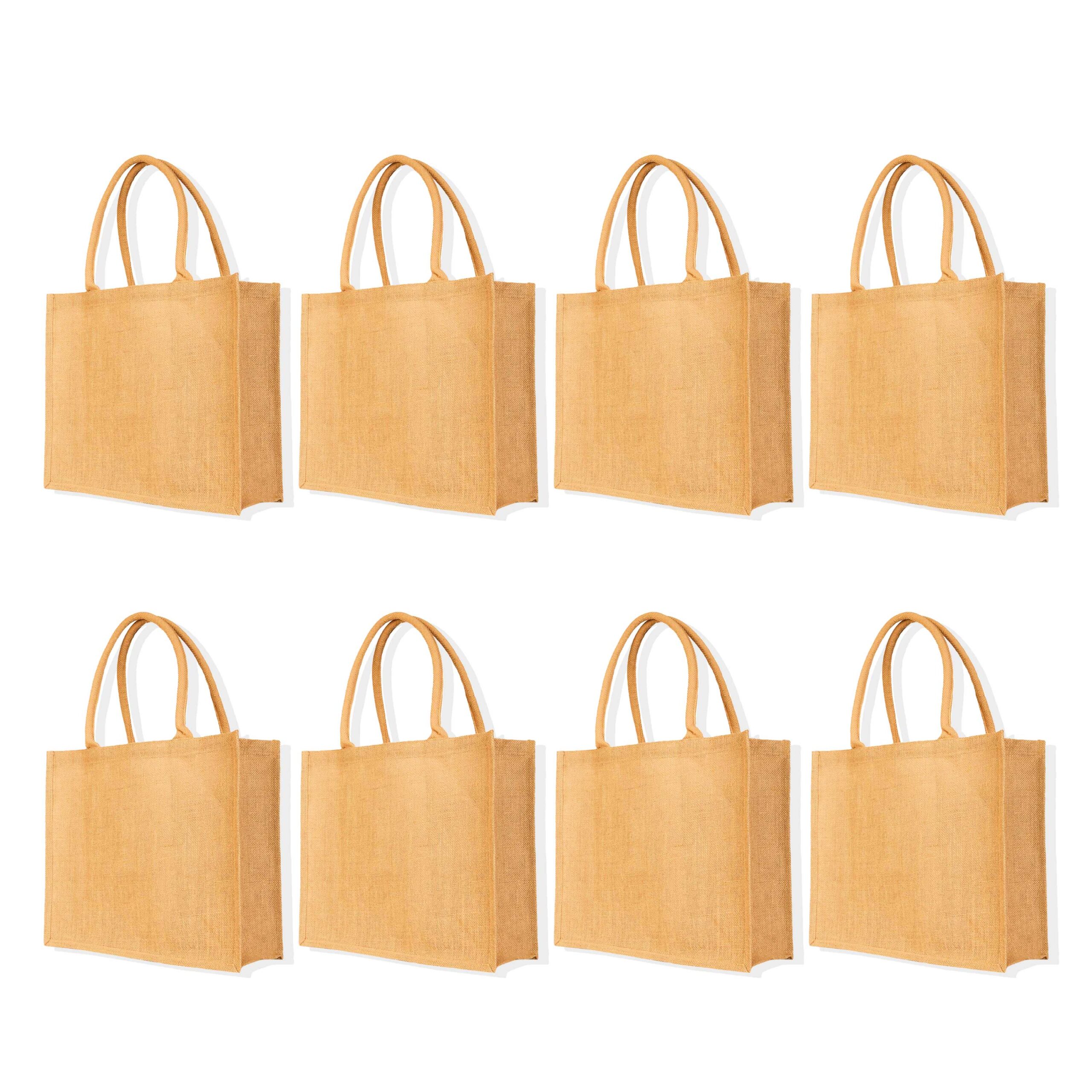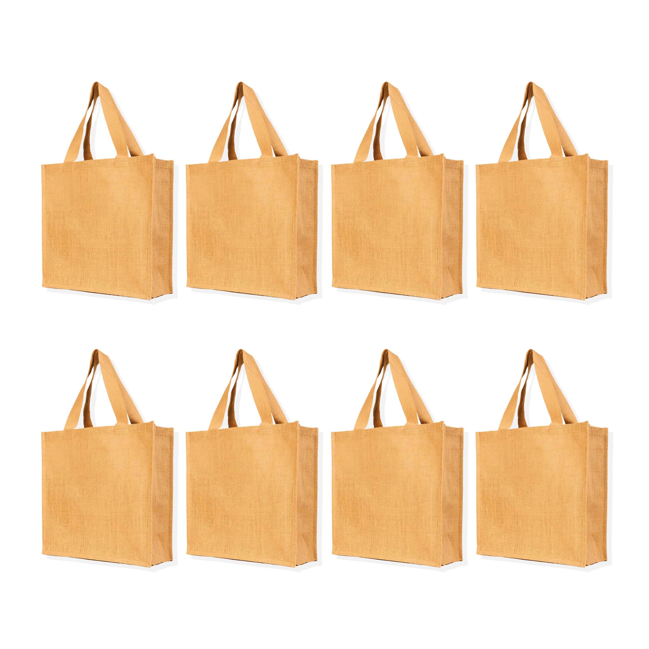 8-Pack Ecojute Jute Shopping Bags 13H x 16L x 7W – Reusable Beach & Gift Bags