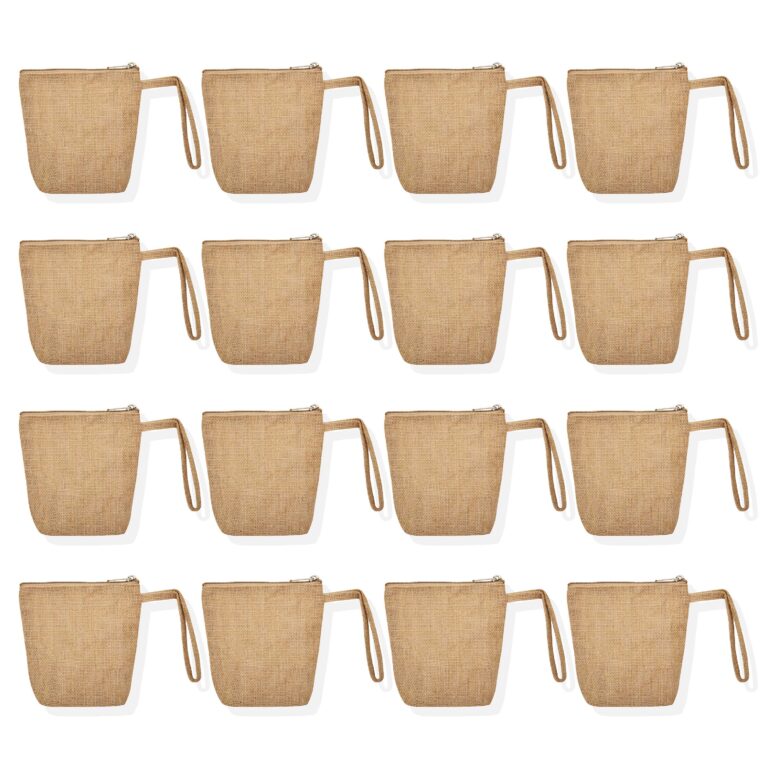 Ecojute 16-Pack Travel Jute Cosmetic Bags – Gift Pouches – 5.91”X 5.90”X 1.96″