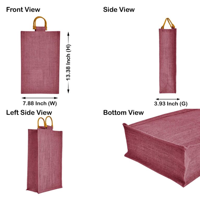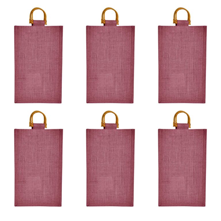 6-Pack 2-Bottle Jute Wine Bags with Cane Handles – Deep Red, Pink, Green, Orange 13.38″ x 7.88″ x 3.93″