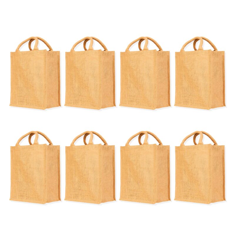 Set of 8 Ecojute Jute Tote Bags 12H x 10L x 4W – Eco-Friendly Gift & DIY Bags