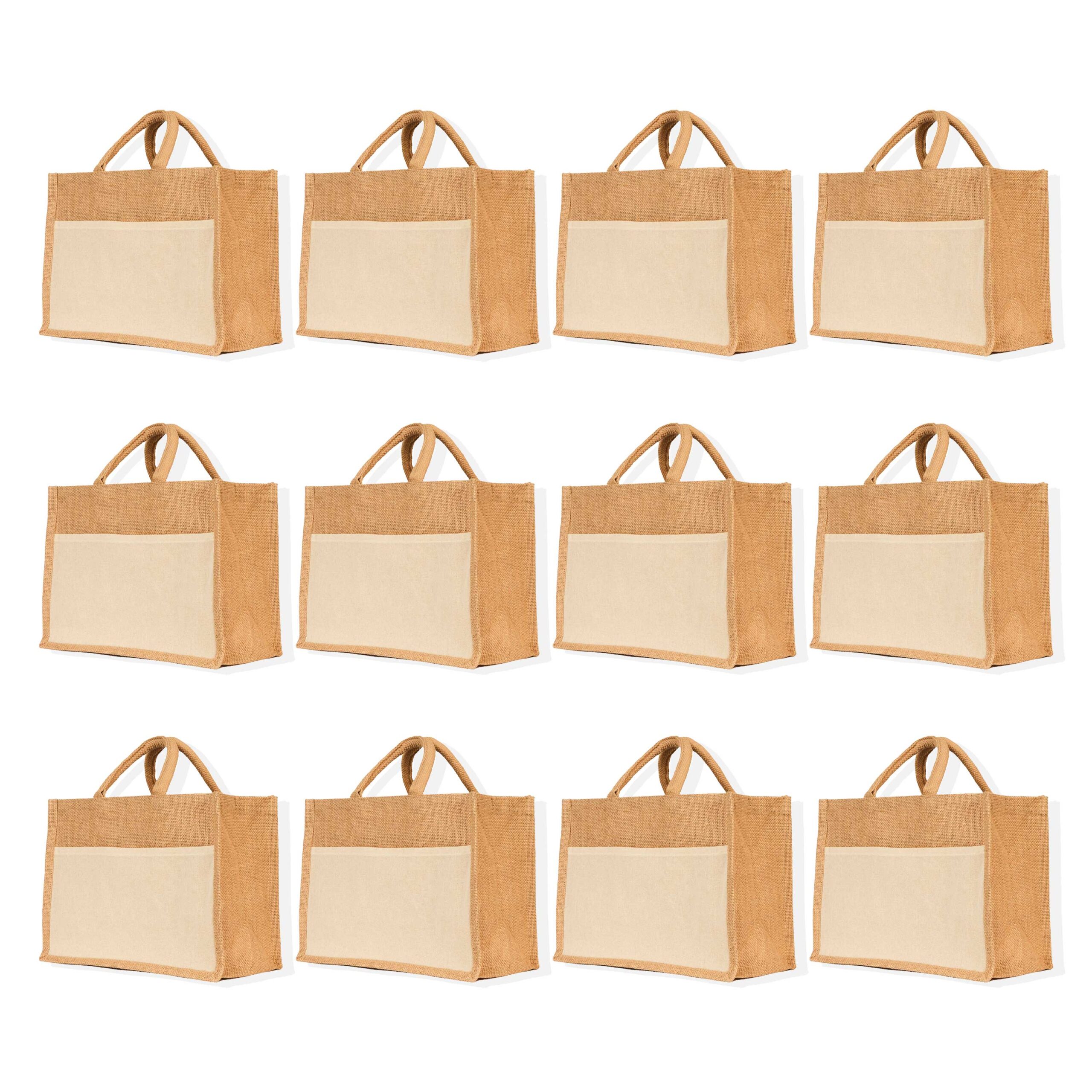 12-Pack Reusable Jute Burlap Tote Bags -Bridesmaids, Gifts & Travel 12″x13″x7″